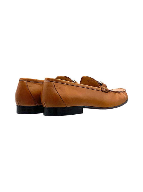 This elegant slip-on, calf leather loafer combines a modern silver-tone bit over a two-tone tri-band. A contemporary take on a classic, this comfortable style will easily transition from day to night.